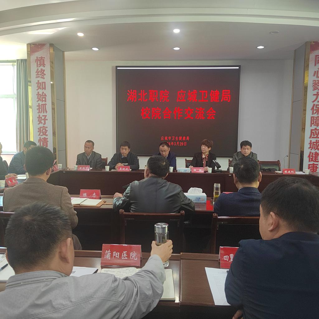 为对接高职教育人才需求,研讨专业建设,促进校院深度合作,寻找技术服务和培训机会,看望实习实训学生,促进毕业生高质量充分就业,推动职业教育更好服务区域经济社会发展,3月29日上午,yl23455永利集团副院长程曙文、yl23455永利集团教学办主任胡建刚与卫生技术学院党总支书记程瑛、卫生技术学院副院长龚晓斌、许智等一行赴应城市开展“访企拓岗促就业”专项行动,应城市卫健局党组书记李少楠率班子成员、相关科室负责人、八所医院负责人出席相关活动。