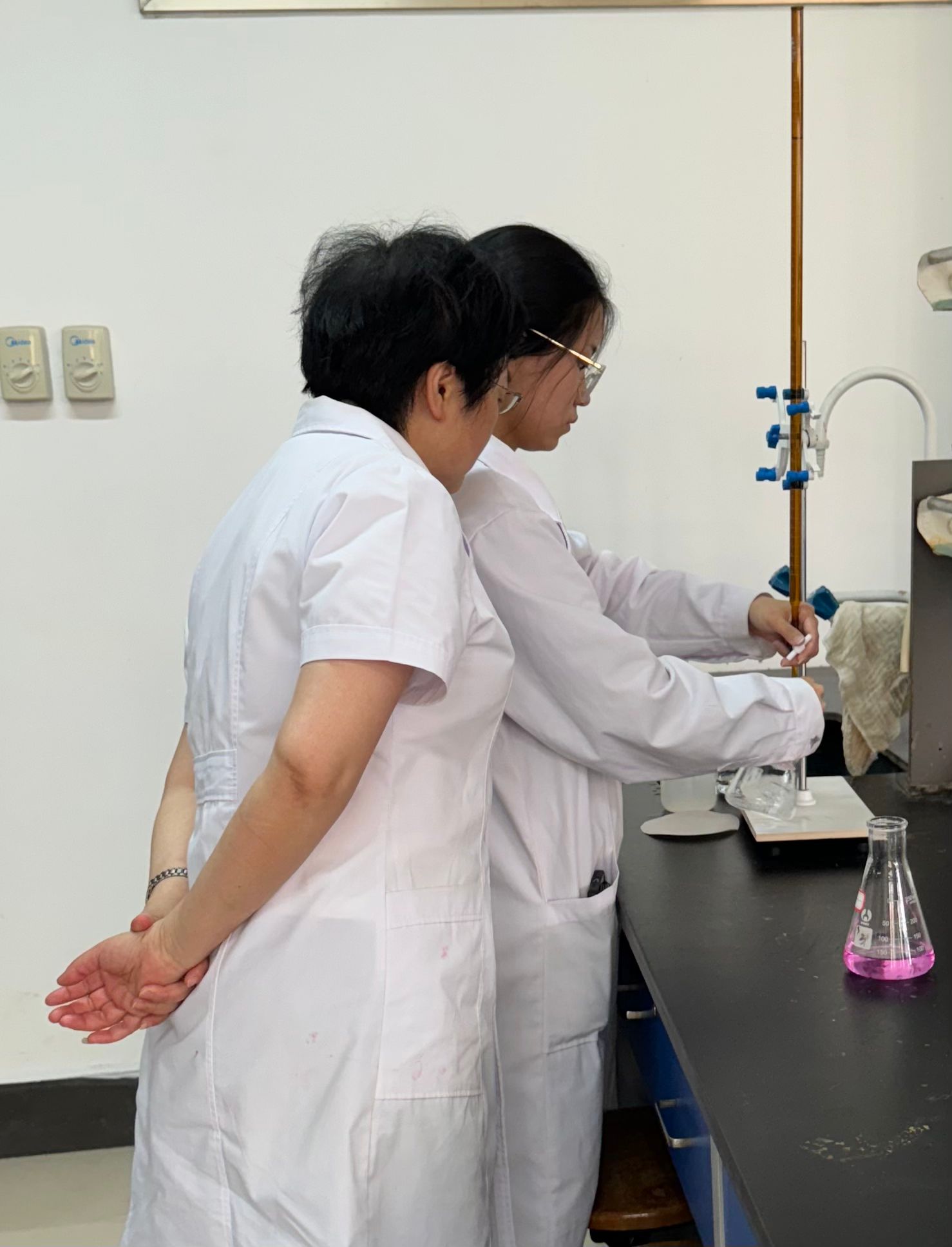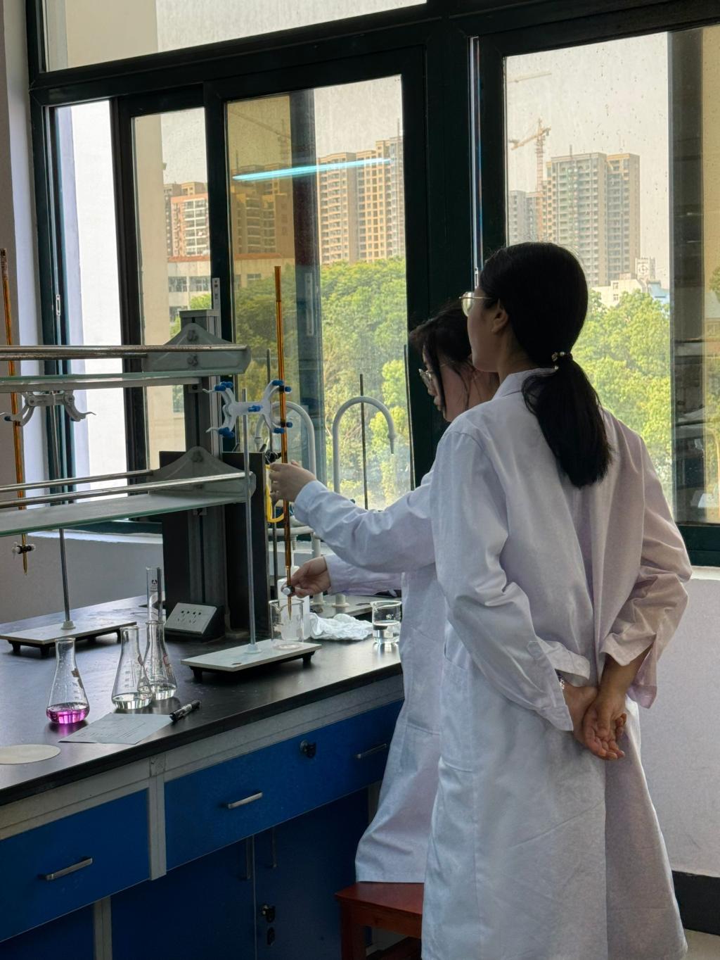 比赛的每一个环节,参赛选手们都进行着规范操作,沉着应对,展示出高职学生的技能水平和工匠精神。现场裁判员全程严格监考,认真核对选手们的液面调零和读数是否正确等。经过激烈的比拼,最终获奖学生名单如下:李燚(一等奖),扬子丹、刘思琦(二等奖),赵晓晓、詹权威、汪超红、姜宛然(三等奖)。