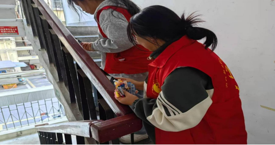 活动现场,志愿者们身着统一志愿服装,佩戴手套与工作牌,分工协作。楼道内,有人手持喷壶均匀湿化广告,有人紧握铲刀沿墙面平行轻铲,有人用抹布细致擦拭残留痕迹,动作默契配合;公共区域里,电线杆下、商铺墙面旁,志愿者们踮脚、弯腰、俯身,不放过任何一处“城市牛皮癣”,即使面对顽固喷漆广告,也耐心用清洁剂反复擦拭,确保清理彻底。