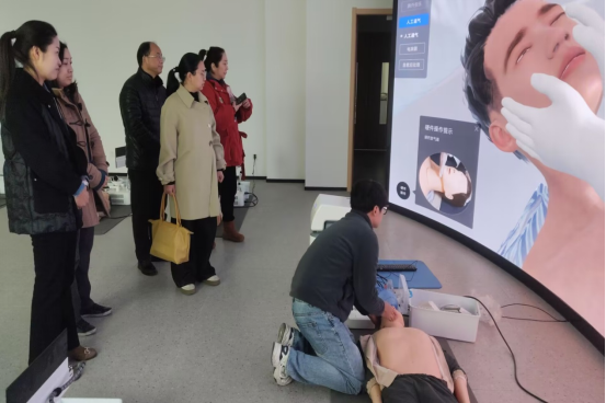 调研座谈会后,彭丹丹一行实地参观了位于学院南校区实训基地内的情景化急救交互中心,对学校为“三救三献”工作给予的重视和支持表示感谢,对情景化急救交互中心的先进性给予高度肯定。