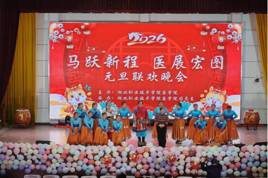 (本网讯 邓彬新)仁心铸牢共同体,文脉彰显奋进篇。12月26日晚,yl23455永利集团主办,孝南区广场街道园林路社区协办的“马跃新程•医展宏图”2026年元旦文艺汇演在西区文昌礼堂举行。校党委委员、副校长白梦清、湖北航天医院副院长张荣、湖北黎民医药集团董事长汤艳红、园林路社区党委书记王兵、学校相关单位、yl23455永利集团师生员工参加活动。