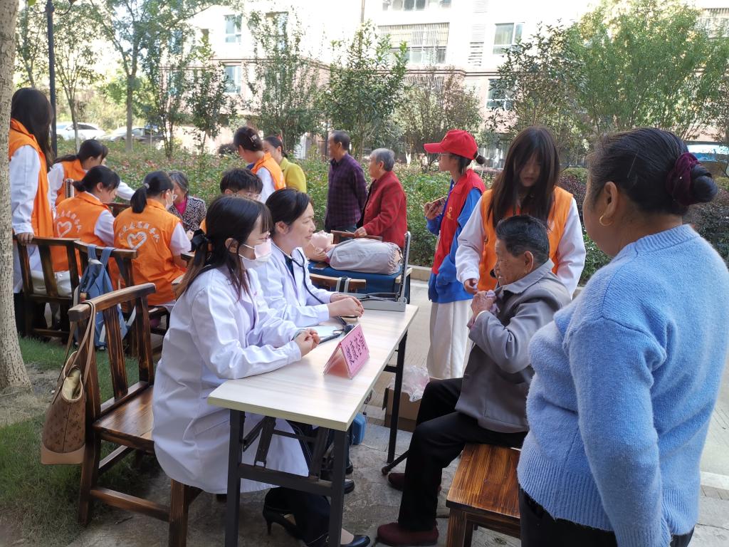 在便民服务区,我们的医学生志愿者主动为每位老年人仔细检查身体,测量血压、血糖,老师们免费为老人提供健康咨询、提出健康管理建议及对长期服药的老年人提出合理的用药指导等。同时,向老年人宣教“什么是常见病和慢性病”等相关知识,希望他们结合自身情况进行适当锻炼,保持健康的饮食。尊老敬老是中华民族的传统美德,老人的健康是社会和谐稳定的重要保证。