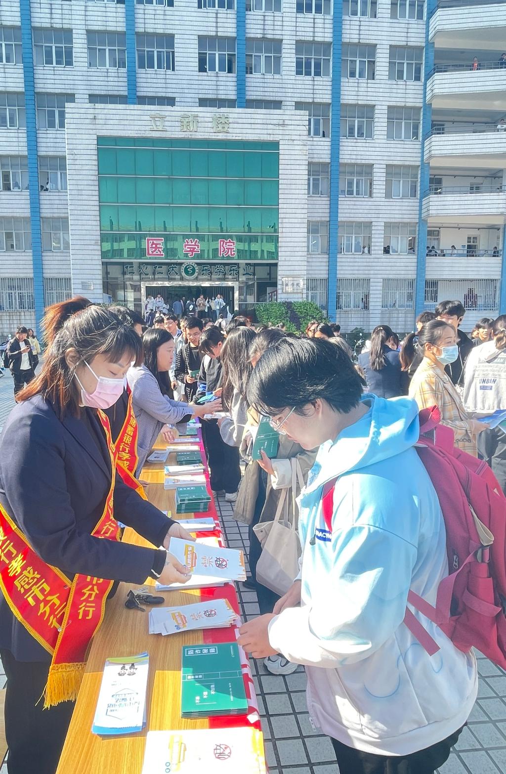 10月23日上午,为落实党中央、国务院关于打击治理电信网络诈骗、跨境赌博的工作要求,打击涉赌涉诈黑色“资金链”,增强师生安全支付意识,yl23455永利集团联合中国邮政储蓄银行孝感市分行开展“反诈拒赌校园行”主题宣传活动。本次活动在立德楼广场举行,活动吸引了yl23455永利集团22、23级数百名师生参与。