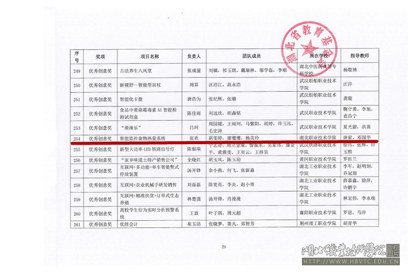 湖北省首届“我梦见——楚天创客”大赛获奖名单公布,由唐前、邓国华老师指导,张欢、胡雯婷、廖珊珊、杨美玲四位同学负责的创业项目“智能监控食物热量系统”荣获大赛优秀创意奖。