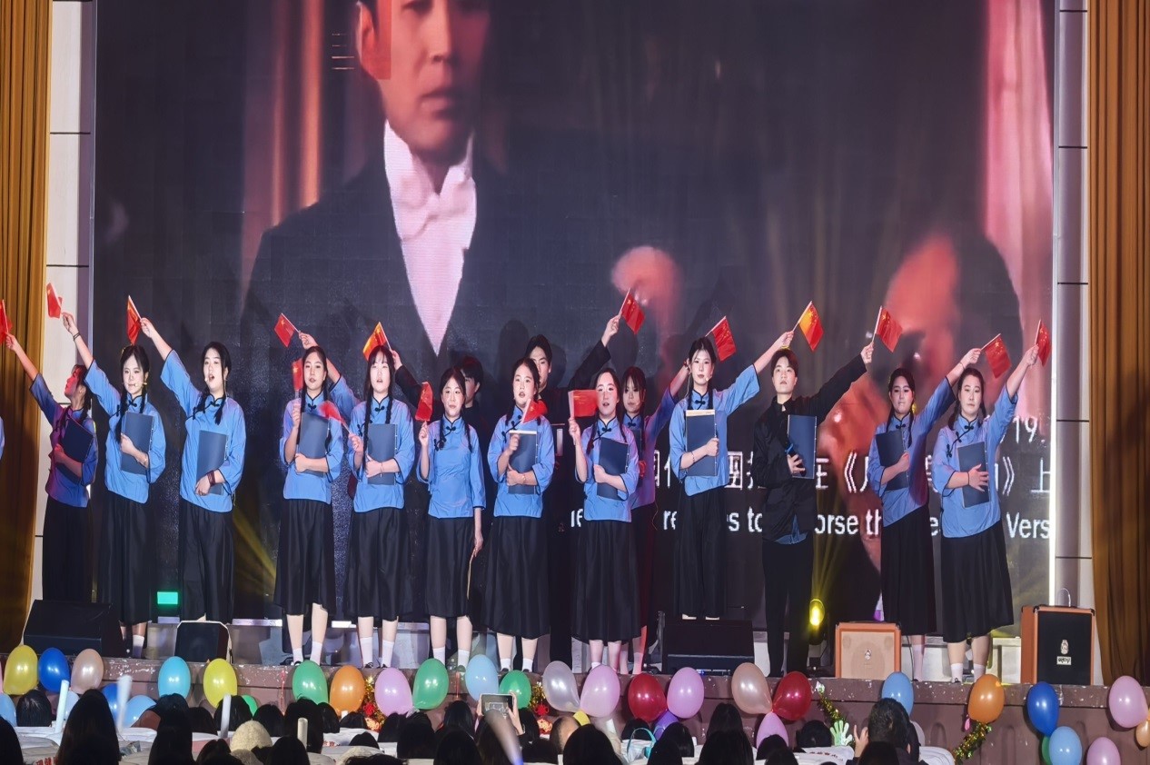 共建单位园林路社区带来的《醉乡》以其曼妙的舞姿引人入胜,朗诵情景剧《五四青年》回顾了五四运动中青年学子的爱国情怀,师生同台的节目《别怕变老》瞬间燃爆全场,以歌声期望我们的学子都能不惧未来,勇往直前。