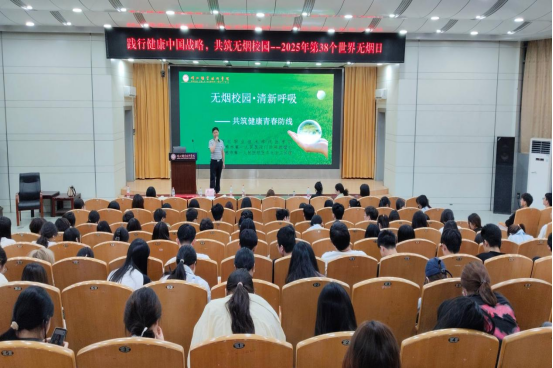 活动期间,孝感市第一人民医院门诊部护士长马燕燕主讲《青春无烟校园更“净”》。马燕燕护士长深入浅出地向同学们普及吸烟的严重危害以及戒烟的至关重要性。一个个因吸烟而导致健康受损的真实故事,一组组触目惊心的统计数据,让在场的同学们深受触动,陷入了深深的思考。
