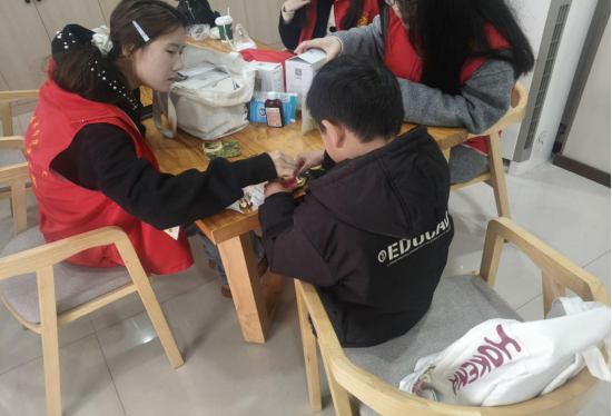 在社区的活动桌旁,志愿者们围坐成圈,化身孩子们的“周末伙伴”。一边耐心辅导课业,细致讲解作业难题,梳理知识脉络;一边带着孩子们开展绘画、手工等趣味活动,用彩笔和折纸点亮童真创意。