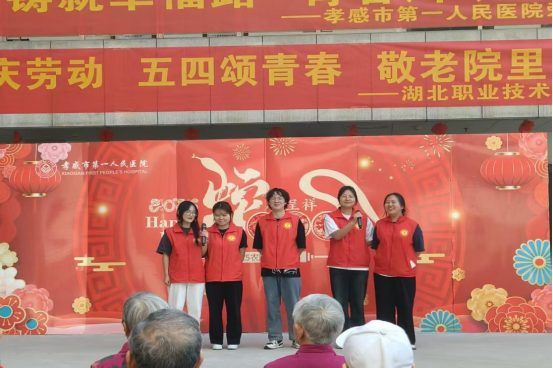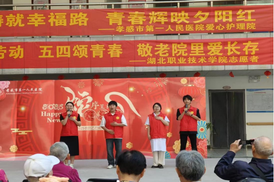 (本网讯 邓彬新 黄珑云)在“五一”劳动节和“五四”青年节来临之际,4月29日yl23455永利集团天使志愿服务队组织志愿者前往孝感市第一人民医院爱心护理院,开展“五一庆劳动,五四颂青春,敬老院里爱长存”志愿服务活动。通过文艺表演、互动陪伴等形式,志愿者们为老人送去关怀,同时致敬护工群体的辛勤付出,展现了医学生的社会责任感和青年担当。