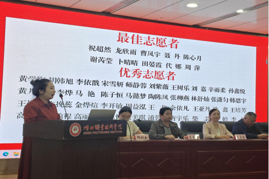 (本网讯邓彬新、伍思怡)为弘扬“奉献、友爱、互助、进步”的志愿服务精神,表彰在过去一年中积极参与志愿服务、表现突出的志愿者们。9月19日我院联合孝感市第一人民医院在西区图书馆学术报告厅隆重召开志愿者表彰大会。yl23455永利集团副院长王光耀、孝感市第一人民医院院委委员、护理部主任王云霞、病理科主任涂宁芳、医务社会工作部副主任殷承英等领导出席。总结彰大会由yl23455永利集团团总支书记邓彬新主持。