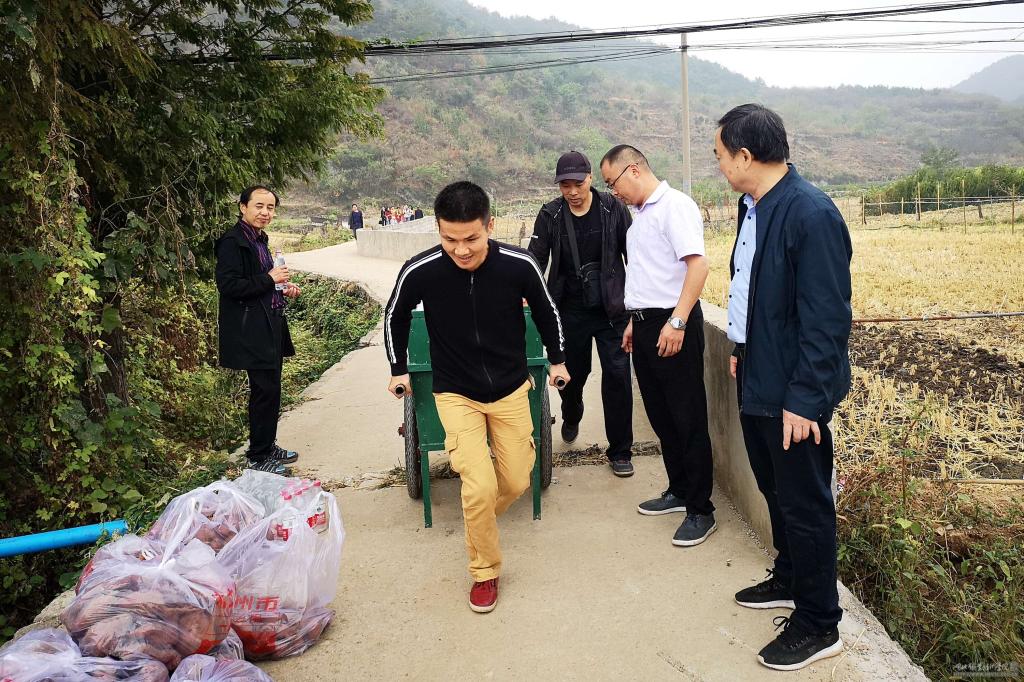 会后,全体党员来到贫困户石国琪家的红薯地,挽起衣袖,打起号子,挥锹扬耙,帮助石国琪挖红薯。尽管拿惯了粉笔的手挥舞铁耙有些生疏和不协调,但大家热情高涨,充满激情。党员干部一起掘土刨坑拔红薯,大家谈笑风生,切磋劳动技能,分享劳动经验,两个小时收获500多斤红薯。党员同志们现场买下了石老汉全部红薯。