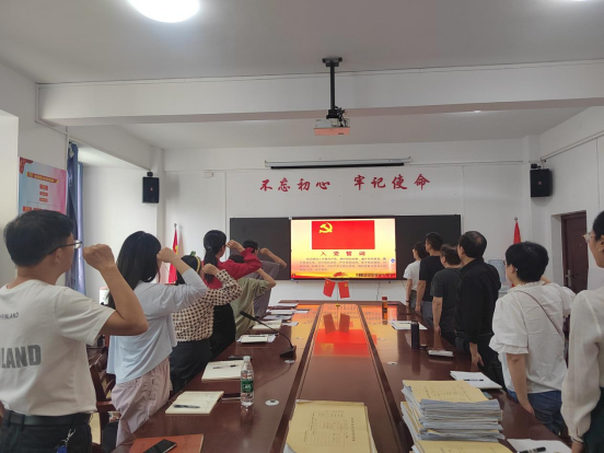 全体党员首先按照既定程序完成了三项规定动作,即缴纳党费、重温入党誓词和集体诵读《党章》。通过这一系列具有仪式感的活动,进一步坚定了党员教师的理想信念和初心使命。