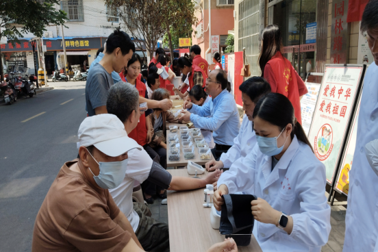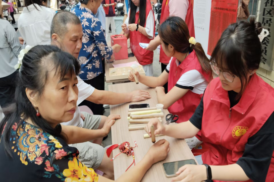 志愿者们精心打造游戏体验区、端午文化展示区和慢病义诊区,三区联动,沉浸体验惠泽社区居民。