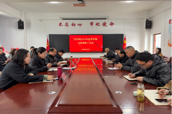 会上,院长陈军芳向全体教职员工致以新春的问候,并对新学期重点工作作出部署。她强调,专业是学院生存之本,必须紧紧围绕提高人才培养质量这一核心,持续深化教学改革,提升育人实效。陈军芳深入分析了当前医学专业的发展趋势,要求全体教师聚焦专业升本、医工融合数智化改造、打造标志性成果以及提高执业助理医师资格通过率等重点任务,齐心协力、奋发有为,推动学院事业发展再上新台阶。
