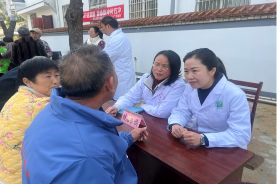 在爱心义诊区,临床医学教研室党员教师袁赟一边记录数据,一边跟村民“拉家常”:“您这血压有点高,平时咸菜要少吃啊!”,并详细讲解了高血压患者在日常生活中需要注意的事项和饮食调整技巧。